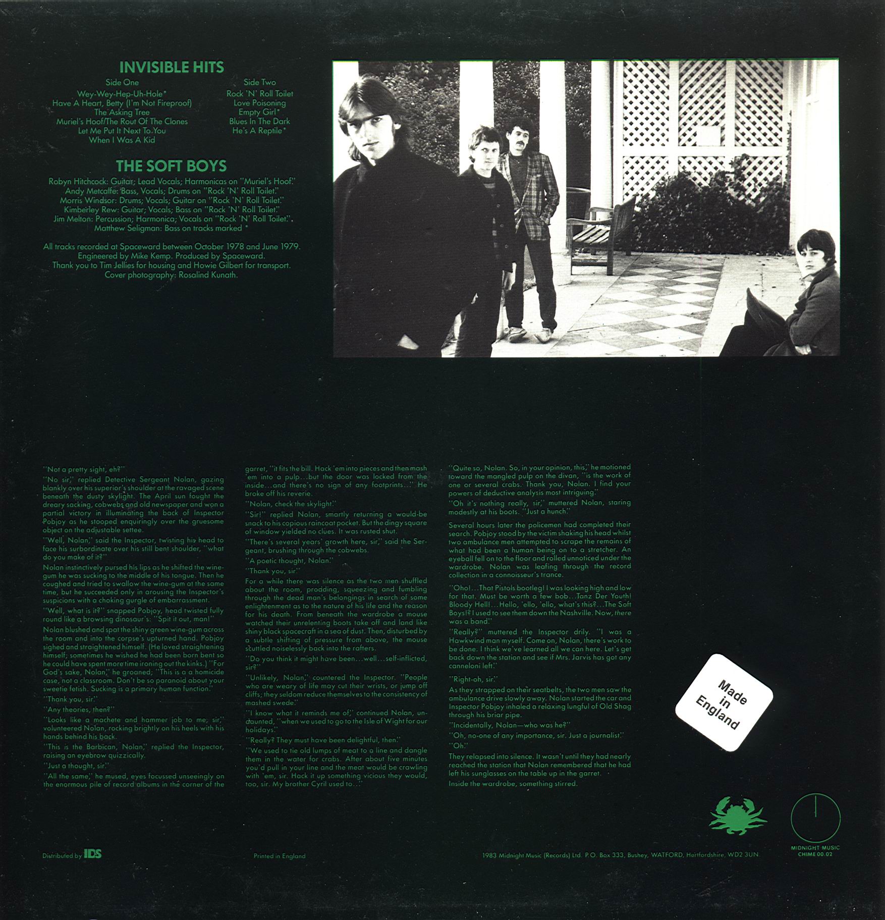 A collection of lost recordings and previously unreleased tracks. Most of the songs were recorded in 1978-79 during the sessions prior to A Can of Bees and Underwater Moonlight.