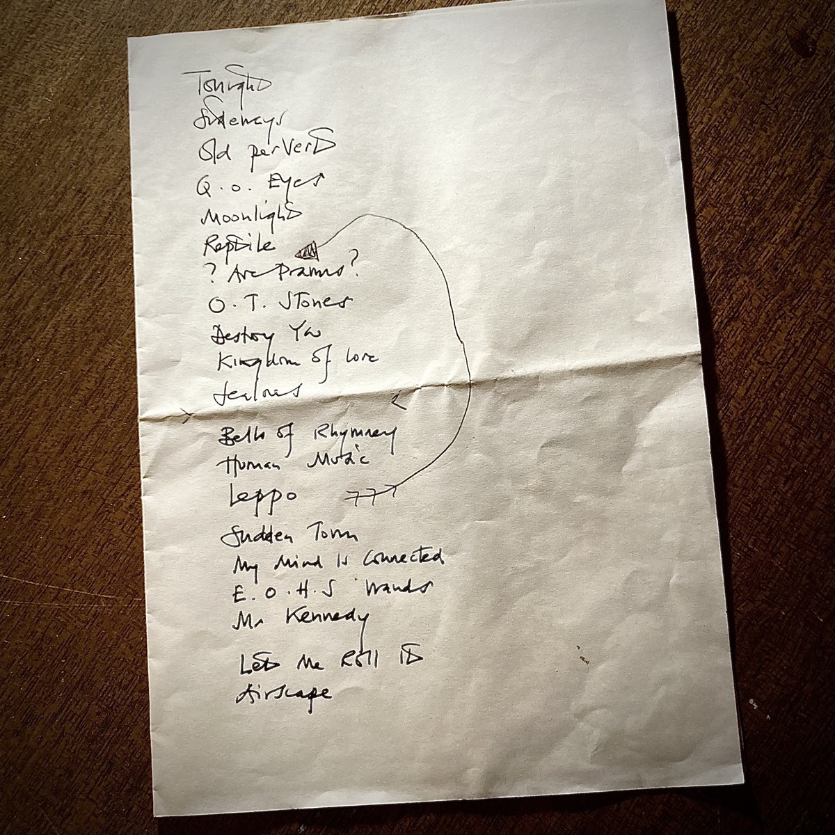 Comments from Anton on Facebook, March 6, 2025 (thanks also to Anton for the image of the note and setlist):