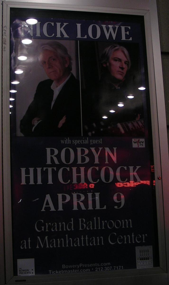 Robyn talked about his being "Nick Lowe's psychedelic younger brother," and how that was reflected in the shirts they buy and wear. Then he played "Wax Doll" and "The Cheese Alarm," two more songs I was not familiar with. I guess a large area of his catalog remains for me to explore!