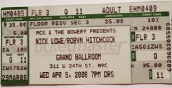 Review by New York TimesOpening the show with another solo acoustic set was Robyn Hitchcock, who is four years younger than Mr. Lowe and the same as ever: a half-joking parody of British psychedelia. His was a rarefied weirdo’s game from the start; there’s no need to update it, really.