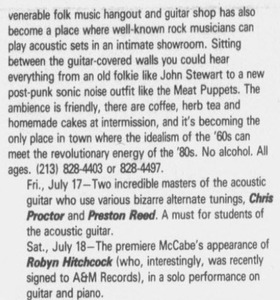 Some gig lists claim he played McCabe's on July 18 1988, but that is an error based on this correct date.