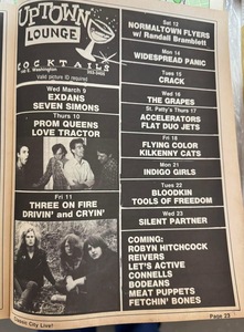 It is possible Robyn's memory recounted in the following article is from this gig, although he remembers it as being at the 40 Watt. There is a gig at an