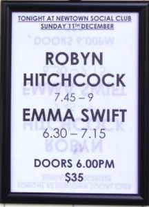 in Emma Swift's opening set. Robyn on guitar and backing vocals