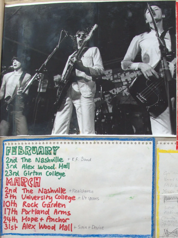 Kimberley Rew's Soft Boys Scrapbook. Lee Cave-Berry provided the setlist image. This is the first known gig to feature Muriel's Hoof/Rout of the Clones with its final title (rather than referring to it as Bryan O'Lynn).