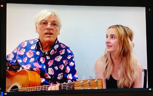 Reg, solo again, did a pretty version of ‘Yes It Is,’ a difficult song to play with some tricky harmonic twists. He did well with it, then straight into a folk-rock version of ‘#9 Dream.’ Emma reappeared with Perry the Lobster, and the duo did a stunning version of ‘Across The Universe,’ another of my favorite songs ever. The singing and playing were extraordinary. After a discussion of improving their amount of “brain RAM,” Reg mentioned that Andy Partridge showed him how to play ‘Ram On,’ but then mentioned this was a Lennon show so we would not be hearing that one. Next was a loose, fun version of ‘The Ballad Of John And Yoko.’