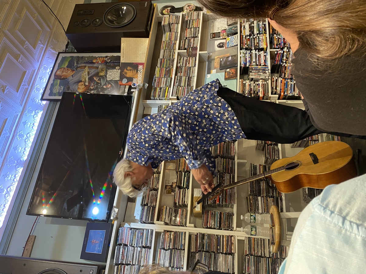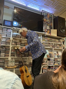 I arrived at Randy's to find that Robyn was running late and was still on his way down from NYC. After a while we were allowed in to take a seat in the small environs of the ‘Man Cave’ record store. Due to Robyn’s late schedule it had been decided that the PA system would be dispensed with for the show so when Robyn did appear all he had to do was take his coat off, take out the guitar and harmonicas and start to play.