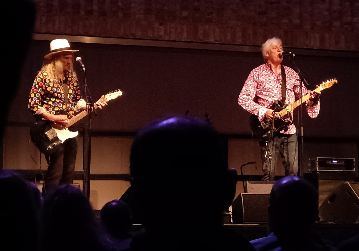 Robyn on electric guitar, with Kimberley Rew