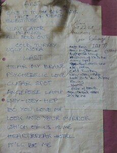 We extend our deepest gratitude to Lee Cave-Berry who provided us the setlist for this gig, as collected by Kimberley Rew. Image contains a bonus setlist from October 7 as the two overlap.