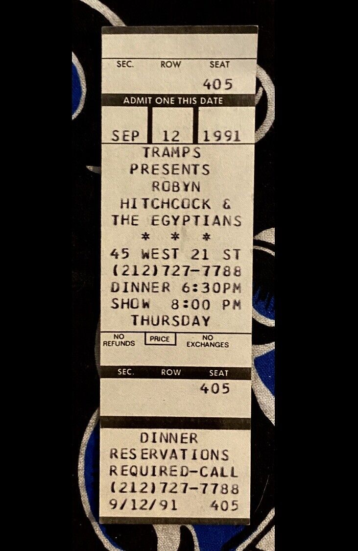 On this day (9/12) in 1991, Matt Pinfield and I represented WHTG at a Robyn Hitchcock & The Egyptians showcase at Tramps in New York. Hitchcock was previewing music from his new album, Perspex Island. Most of the audience was radio people, journalists, A&M Records employees, various music industry types, and 25 members of Hitchcock's fan club.