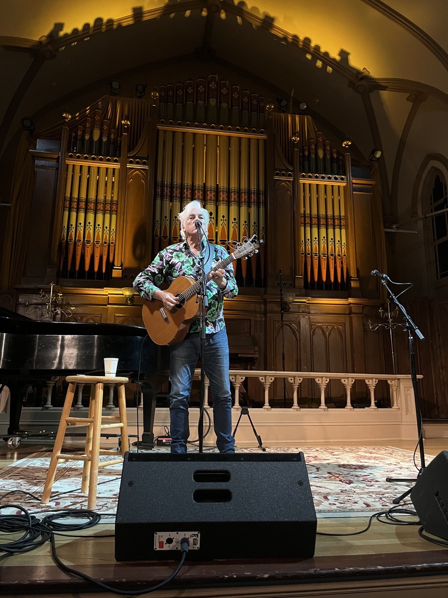 Online review by Spectrum CultureIt was St. Lennon’s Day according to Robyn Hitchcock who mounted the first of two sold-out, mostly solo concerts at Portland’s Old Church on what would have been the former Beatle’s 84th birthday. The past has been on this 71-year-old British musician’s mind lately. Not only has Hitchcock recently released his memoir, 1967: How I Got There and Why I Never Left, the songwriter also put out a limited-edition album called 1967: Vacations in the Past to accompany it. Featuring covers of songs by Jimi Hendrix, the Beatles, the Kinks and more, the album is a collection of the threads that have informed Hitchcock’s own very literate psychedelic songs.