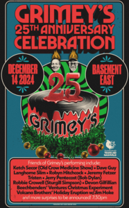 Hi guys!!!! Grimey’s, The Basement East and friends are celebrating our Grimeys 25 Year Anniversary and the holidays with with a spirit filled show at The Basement East. Long time dear buds bring their talents and little Ho! Ho! Ho! It’s been a few years since the days of our Christmas themed shows at the OG Basement and we are bringing it back better than ever! Grab the kids and join us as we celebrate the meaning for the season! Our band meister Jerry Pentecost and crew fire up a few funky Booker T. sleigh riding bangers while also backing up a bunch of long time heroes and a couple of unannounced special guests!! We’ve also got Holiday Surf and Hawaiian fun starting things off. We are excited that proceeds from the event will benefit Trans Aid Nashville. Hell Santa might even make it!!! Feliz Navidad!Live photo by Gina B