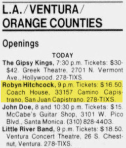 Robyn Hitchcock refused to allow his picture be taken by Times photographers.