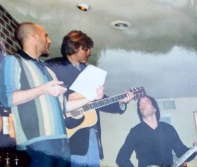Here I am way back in the Smoke Age with REM’s Michael Stipe and his guitarist Peter Buck. We are standing on tables in the Bar Cicchetti on West 24th Street in New York, though the tables didn’t find their way into the photo.